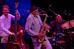 Another of Lloyd’s flute classics, “Third Floor Richard” from way back in 1966, was a genial transition to the powerhouse finale, “Passin’ Thru.” Talk about a staple in Lloyd’s career, young Charles brought this line to a Chico Hamilton date in 1963, and it’s the title cut of Lloyd’s upcoming Blue Note release. Like so many formidable classic performances, this one began with an impressive bass intro. Clayton layered onto Granadier’s foundation, quickening the pace before Lloyd laid out the line. Then Clayton really amped up the intensity – and Lloyd rode onto that conflagration, turning it into a raging firestorm, capped by a blistering outchorus.