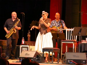 As she introduced her supporting cast, six pieces plus two backup singers called the Memphis Soulphony, Bridgewater told us that her detour was taking her back to the soul and blues of her hometown. So there were golden oldies by Big Mama Thornton, B.B. King, Al Green, Otis Redding, solos by each of the backup singers, and a purple Prince encore. The last two numbers, a Redding-styled “Try a Little Tenderness” and a communal “Purple Rain,” with many in the audience firing up their smartphone flashlights to simulate the good old butane lighter days, were distantly connected with jazz.