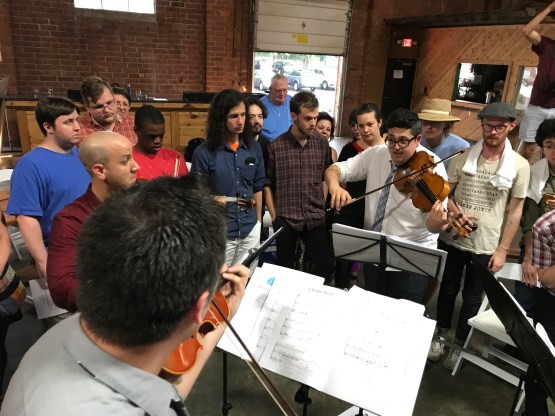 Musically, Palmer’s shining moments came three programs earlier when he played the Beethoven Clarinet Trio with Muzijevic and Roman, while the best of Nuttall came when he led an inspired performance of the Mendelssohn Octet. Some of the inspiration no doubt came from the meet-up between Nuttall’s St. Lawrence Quartet and his newest Spoleto recruits, the Rolston String Quartet. They won the Banff International String Quartet Competition 24 years after the elder Canadian quartet won the same prize in 1992. There were moments when Rolston cellist Jonathan Lo and violist Hezekiah Leung gazed upon Nuttall’s rapt antics – his back-and-forth swaying on the first chair and his spasmodic knee-lifts – with undisguised, wide-eyed wonder, apparently unaware that he played with the same abandon, eccentricity, and charisma when he first came to Spoleto in 1995. Except that his hair was longer then.