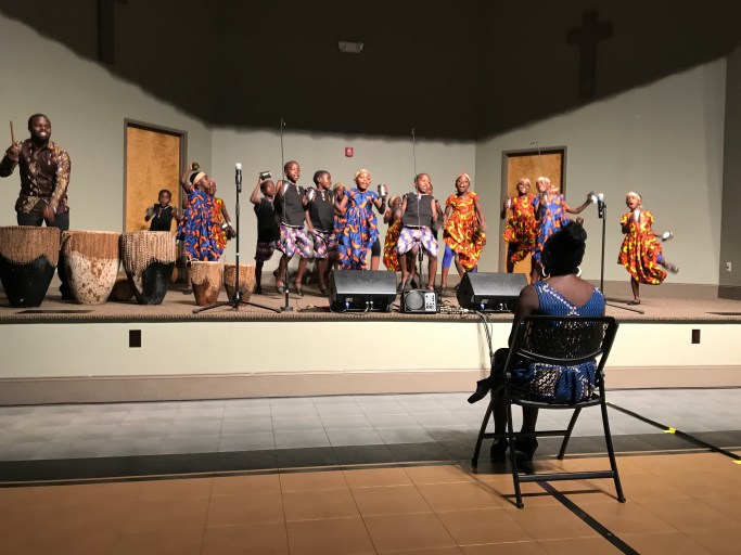Seated in front of the stage, Nambooze directed the children with a minimum of fuss, returning to the spotlight on just a few occasions, most notably to sing a lead vocal after launching a wake-up tableau and to preside over the more extended break halfway through the concert, when donations were asked. The head teacher who travels with the group, Timothy Kawuma, identified himself as “Uncle Timothy” and turned out to be the most bodacious drummer we would see. Kawuma and Nambooze also offered personal testimonies, linking themselves with the beginnings of the Children’s Choir – when both were members of Choir 19 – and ending by proudly announcing the college business degrees they had earned, she in administration and he in statistics. Future of Africa.