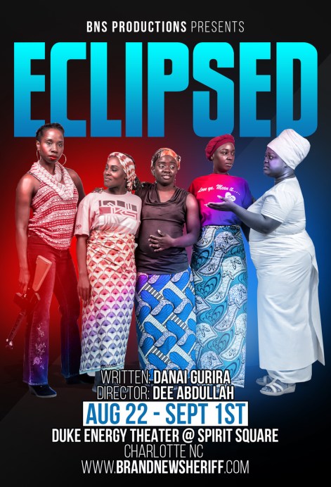Gurira’s rare achievement is definitely drawing the spotlight now that Eclipsed is making its rounds among regional theatres. Bringing Eclipsed to Spirit Square this week, Brand New Sheriff Productions certainly isn’t ignoring the playwright’s Walking Dead and Panther connections as it spreads the word.