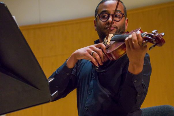At the keyboard, Phillip Bush resisted the temptation of steering the joyousness of the piano part into stentorian jubilation, resulting in more ensemble cohesiveness and more contemplative edge. Lupanu could stay more within himself to match Bush’s fire without ever flattening the peaks and valleys of the volatile music where Bartók abruptly changed tempos and dynamics. Marcus Pyle, who had inched onto our radar earlier this year as a preview speaker for Opera Carolina’s production of Porgy and Bess, impressed almost instantly on viola with his lush tone and sleek double-bowing.