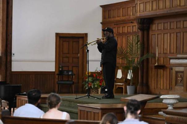 Of course, so much more besides jazz is offered at Spoleto. Any of the staple components of the festival – opera, theatre, chamber music, choral music, or dance – can find itself hiding in plain view amid the prodigious entirety of the festival, 120+ performances this year over 17 days. Strip away that mass of other stuff and it isn’t really hard to see that the 2025 lineup down in Charleston measures up with the best in North America. Cécile McLorin Salvant, Branford Marsalis, Vijay Iyer, Ambrose Akinmusire, Phillip Golub, and Etienne Charles not only match up well with the most elite festivals on the continent. Two of them, trumpeter Akinmusire and keyboardist Golub, lingered at multiple festival sites for three-day residencies, giving four and six performances respectively.