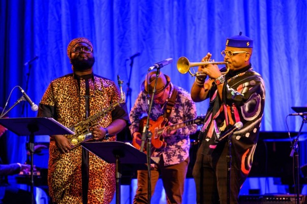 Akinmusire had little to say between selections, usually pointing to and naming one of his bandmates, but his horn said plenty, with judicious electronic alterations here and there. You could argue that Akinmusire had somehow synthesized the earliest electronic explorations of Bitches Brew Miles Davis with the two acoustic periods that preceded that revolution, the Kind of Blue period and Davis’s playing with the quintet he led that introduced Herbie Hancock and Wayne Shorter to the universe. But the living trumpeter is undoubtedly building upon that legacy.