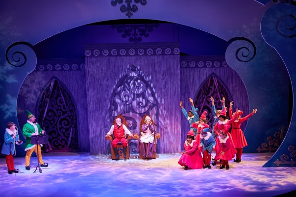 Likewise, Carlos Nieto and Ericka Ross convince us that Rudolph’s parents, Mr. and Mrs. Donner, have real souls instead of clay molds. You can feel that they’re genuinely worried about their cute little oddball offspring. Our host and narrator, Brandon J. Johns as Sam the Snowman, was geniality itself, establishing a fine rapport with the matinee audience and delivering “A Holly Jolly Christmas” with nearly as much avuncular jollity as its originator, Burl Ives.