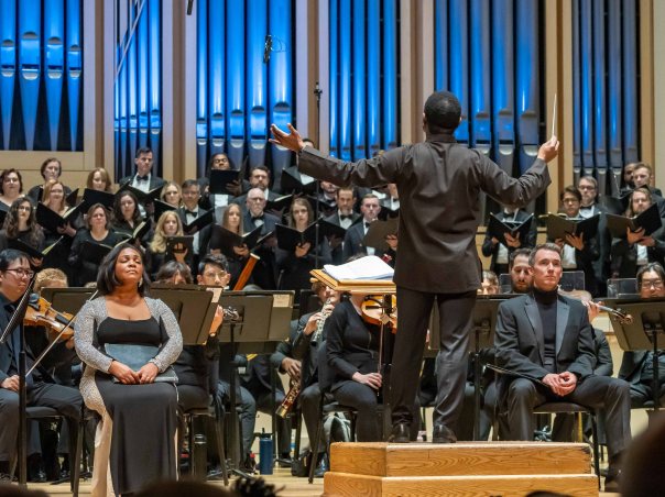 Marie Van Rhijn was the first woman to conduct a recording of Pergolesi’s chef d’oeuvre in 2021 on the Chateau de Versailles label, so Emily Jarrell Urbanek was almost a pioneer in adding her special empathy toward the grieving Virgin Mary as she stood on the podium leading the Charlotte Symphony Orchestra Ensemble. But wait: the Van Rhijn recording was done with two male vocalists! Samuel Mariño and Filippo Mineccia, listed on the album cover as the “deux costrats,” also perform the Vivaldi Stabat Mater on that release with Van Rhijn conducting. So together, Urbanek, soprano Corey Raquel Lovelace, and mezzo Leyla Martinucci may have been making feminist history after all.