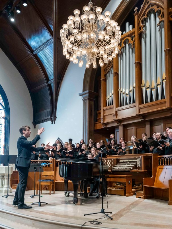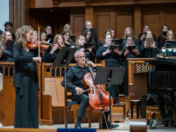Martinucci was the more unique find overall because of the creamy richness of her sound, though Lovelace sang equally well and matched her purity. Not long after Martinucci’s luscious and revelatory “Quae moerebat et dolebat,” Lovelace’s most affecting solo was the “Vidi suum dulcem natum,” two sections later. Between them came Pergolesi’s fifth section, “Quis est homo qui non fleret,” perhaps the apex of the concert. Lovelace launched into this section at some length, so it briefly seemed like this was a solo and Martinucci had neglected to take her seat. But Martinucci had an equally gorgeous solo afterwards and Lovelace didn’t return to her seat, either. We would be ascending heavenwards once more when the two voices soon intertwined.