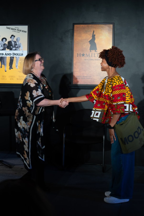 There may be an inside joke here. Do you really audition for the role of The Director in the play you have programmed by your sister at your own theatre? Do you think director Anna Montgomerie invited Lambert to play the role, or was the inviting done in the opposite… direction? Wouldn’t Lambert, not the shyest person on the Charlotte theatre scene, have leveraged some of her status – and experience – in determining how her character should be written and played?