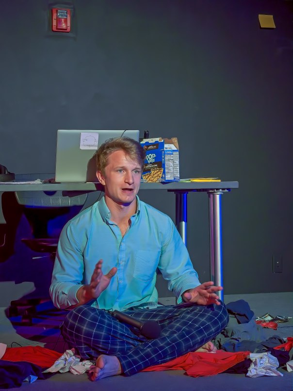 If you’ve inferred that T.J. is eccentric and perhaps sadistic, you’re on the right track. Rahman Williams as T.J. doesn’t ask his applicants a scripted set of questions – or even the same questions. Deepening his aggression and moving us abruptly from interview to audition, he challenges Marigold and Emily to show him how they would handle specific on-the-job situations.