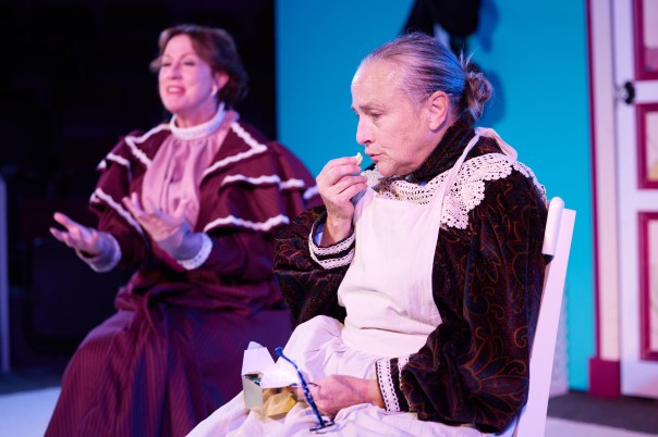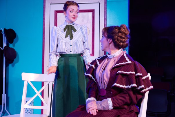 Aside from Janet’s drunken chaperone, politely labelled as Drowsy, there are a butler Underling, an eccentric Mrs. Tottendale, and Robert’s best man George shepherding the loving lambkins to the altar. Only Zach Linick as George seems to be afflicted with any degree of competence or reliability. More importantly, he and Faulkenberry make up a formidable tapdancing duo. (Thank-yous to choreographer Lisa Blanton.) Allison Rhinehart as a frilly, bustling Tottenham and Darren Spencer as the gray and starchy Underling are no less inevitably channeled toward blithe entertainment.