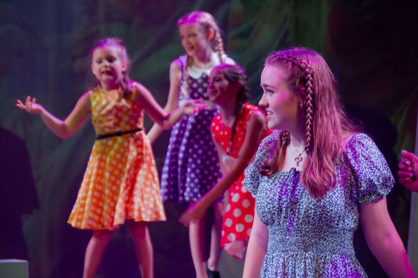 Equally dumb, Autumn Cravens as Kitty is a ditzy chorine, constantly nagging her boss and wedding escort Feldzeig to let her fill Janet’s shoes in his next Follies. Effortlessly, Dudas will outperform Cravens in thwarting Feldzeig’s schemes. Love conquers all, but it would be a huge spoiler to say how many times when we reach this very happy ending.