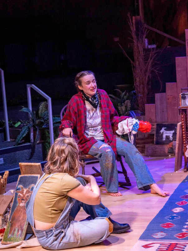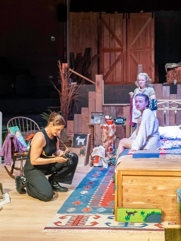 It’s all a conspiracy, for we must factor in how Simmons has configured his black box into a thrust staging. The thrust of the compacted performance space, extending from Humphrey’s kitchen to his triple-locked door, implicates us all as it heightens our involvement.