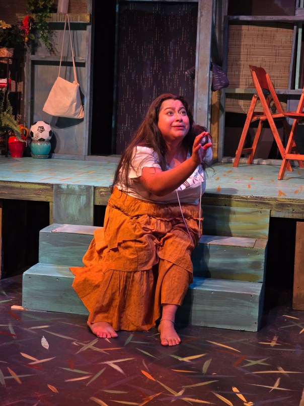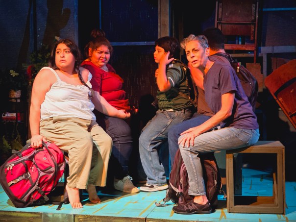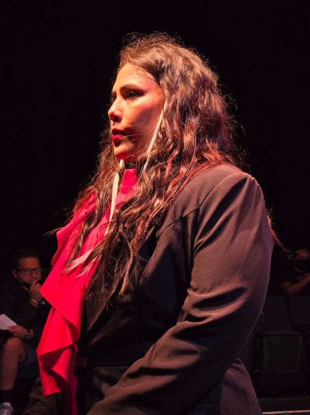 Although Jennifer O’Kelly’s lurid set design and projections combine with Madison King’s lighting to give the impression that LA’s el barrio is ablaze 24-7, the Arts Factory space is too limited to back up the idea that Clemencia’s check from Century 21 will be a huge fortune. It is Isabel Gonzalez as Clemencia who makes the House of Atridas formidable in a towering performance to savor every moment she’s onstage.