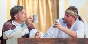 It’s Caryn Crye who unexpectedly brought me the strongest flashback to the 50s as Elizabeth. Again and again, Crye’s quietly assertive and judgmental portrayal evoked the Emmy Award-winning Audrey Meadows in her iconic role as Alice Kramden on The Honeymooners (1952-57). This is a cold and grudging Elizabeth who knows a woman’s place yet never backs down. She comes to see her own failings and their causes in the poignant final dialogue with John. Yet when we hear her last words, it’s hard to discard the notion that nothing less John’s march to the gallows could convince her of his complete atonement for his infidelity.
